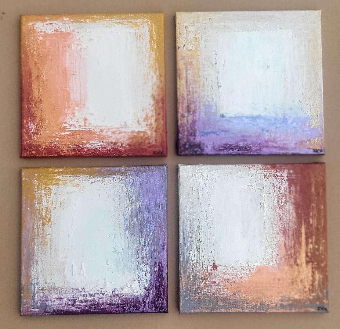 Seria 4 małych obrazków z użyciem farb iridescent. Dla mniejszych pomieszczeń aby dać więcej radości.