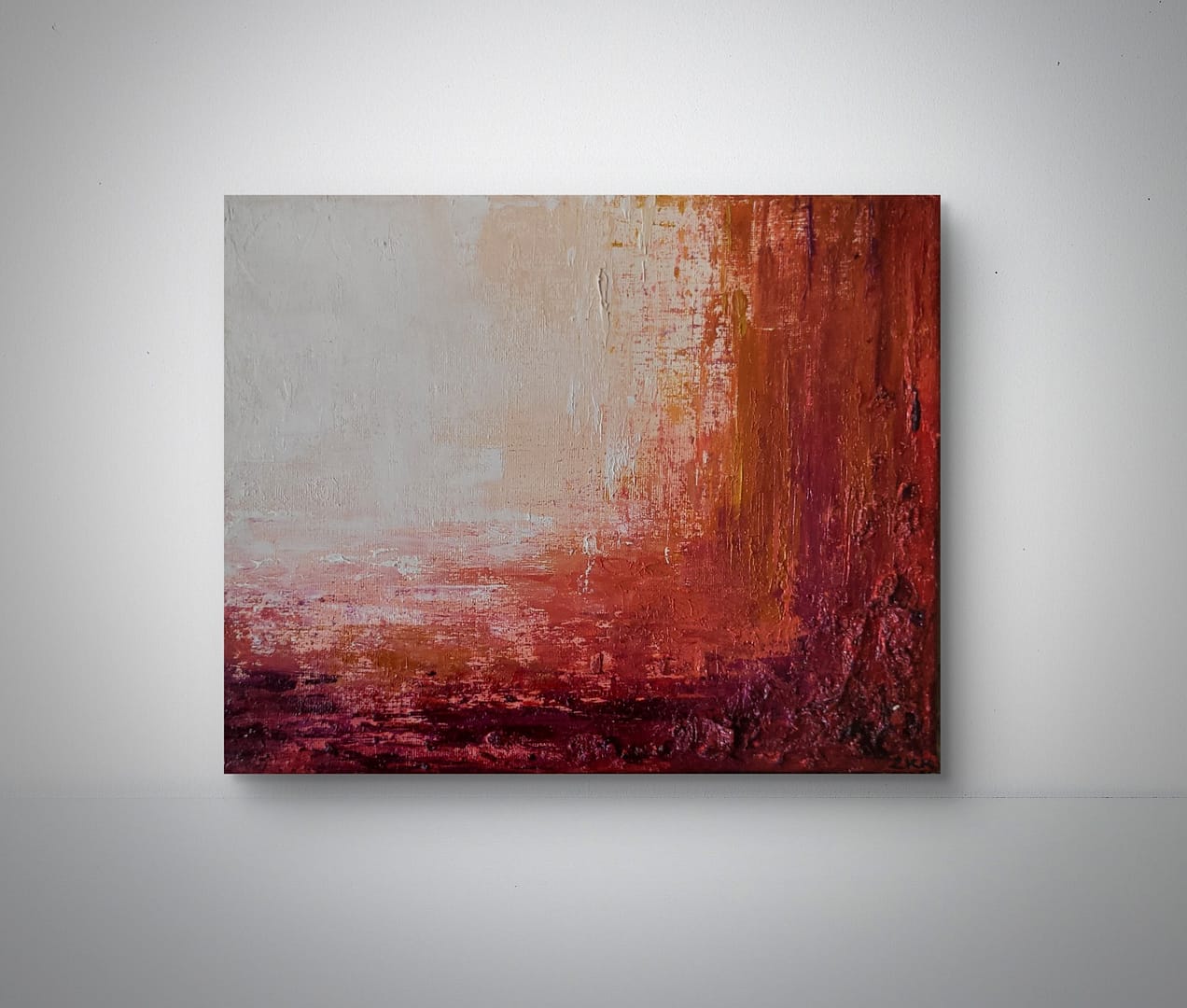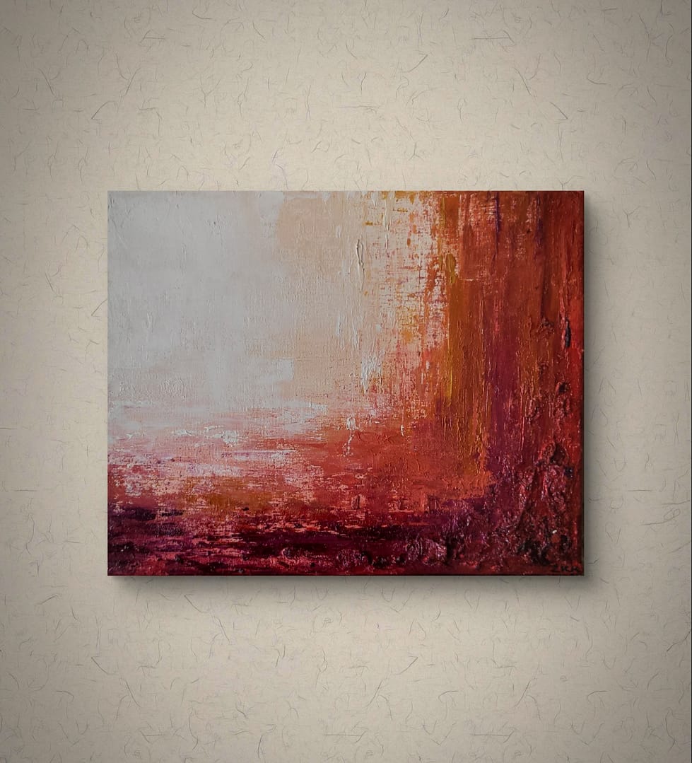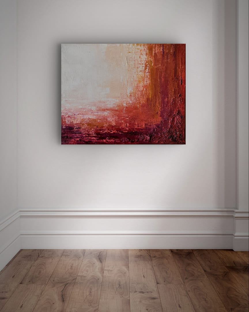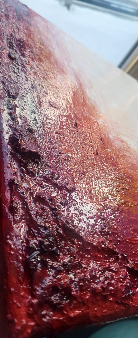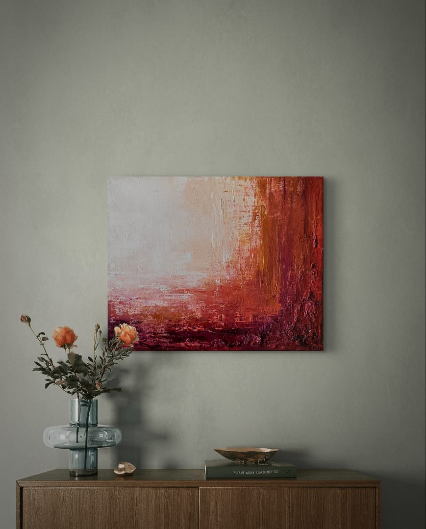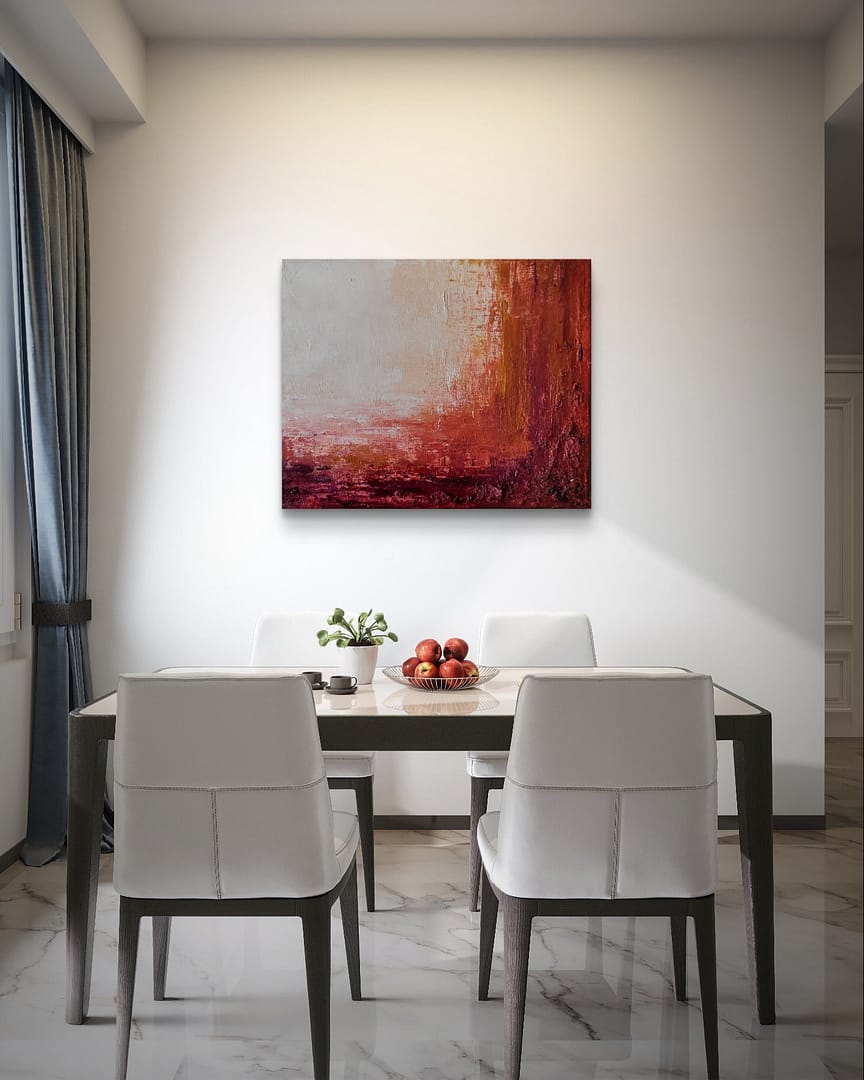 Bardzo silna faktura obrazu sprawia, że obraz jest wyrazisty i odważny. Błyszczący werniks jeszcze dodaje soczystości barwom już i tak intensywnym. Sprawdzi się jako radosny dodatek do mniejszych wnętrz lub sąsiadujący z bardziej spokojnym większym dziełem.
