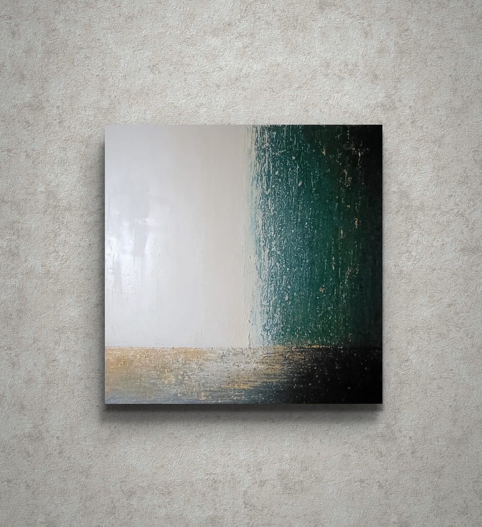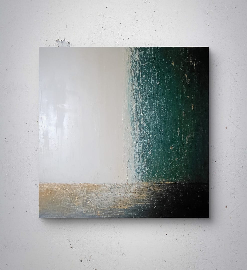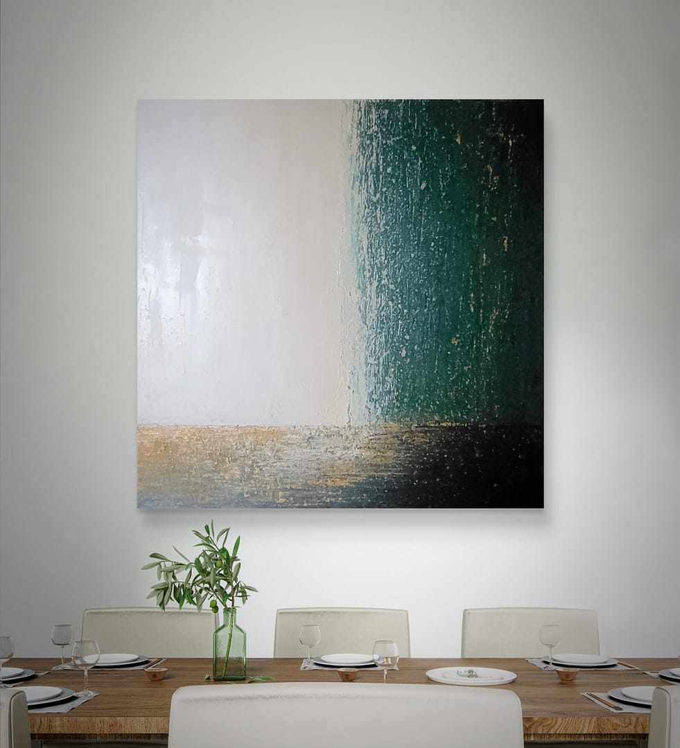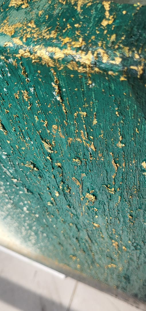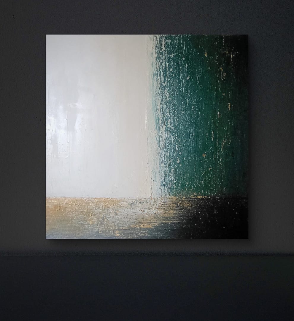 Obraz olejny w stylu abstrakcyjnym w wariacji szmaragdowej na specjalne zamówienie do Salonu Bernacki w Łodzi 🙂