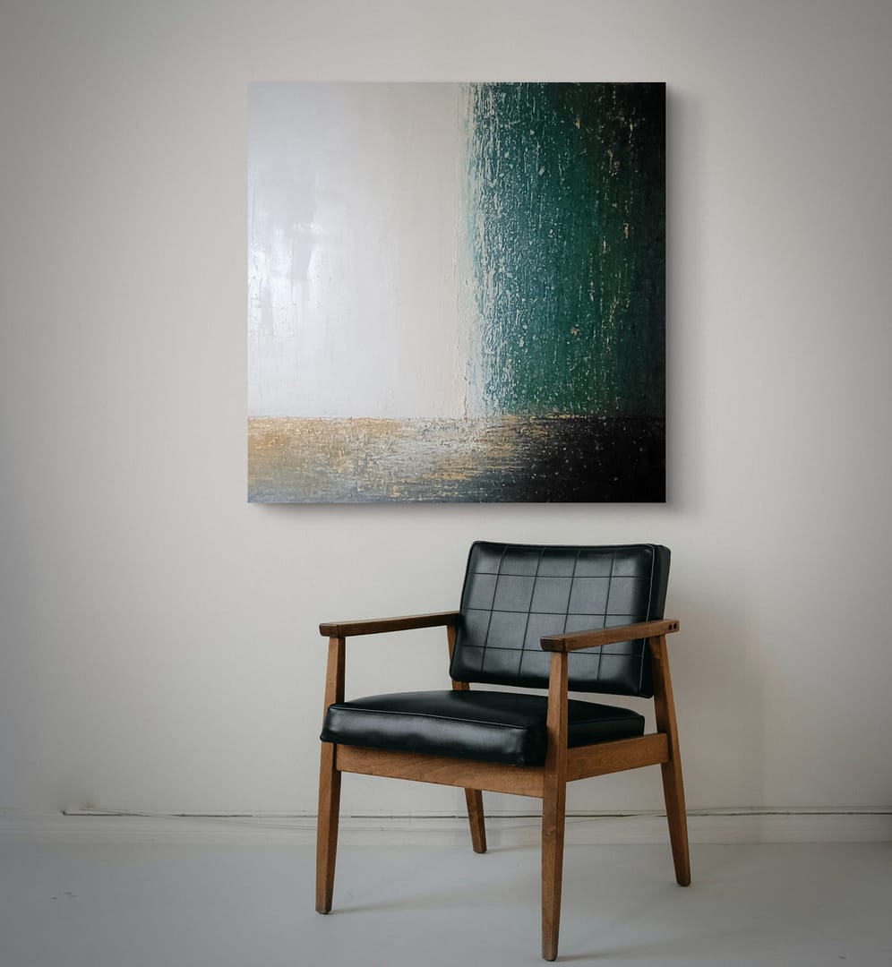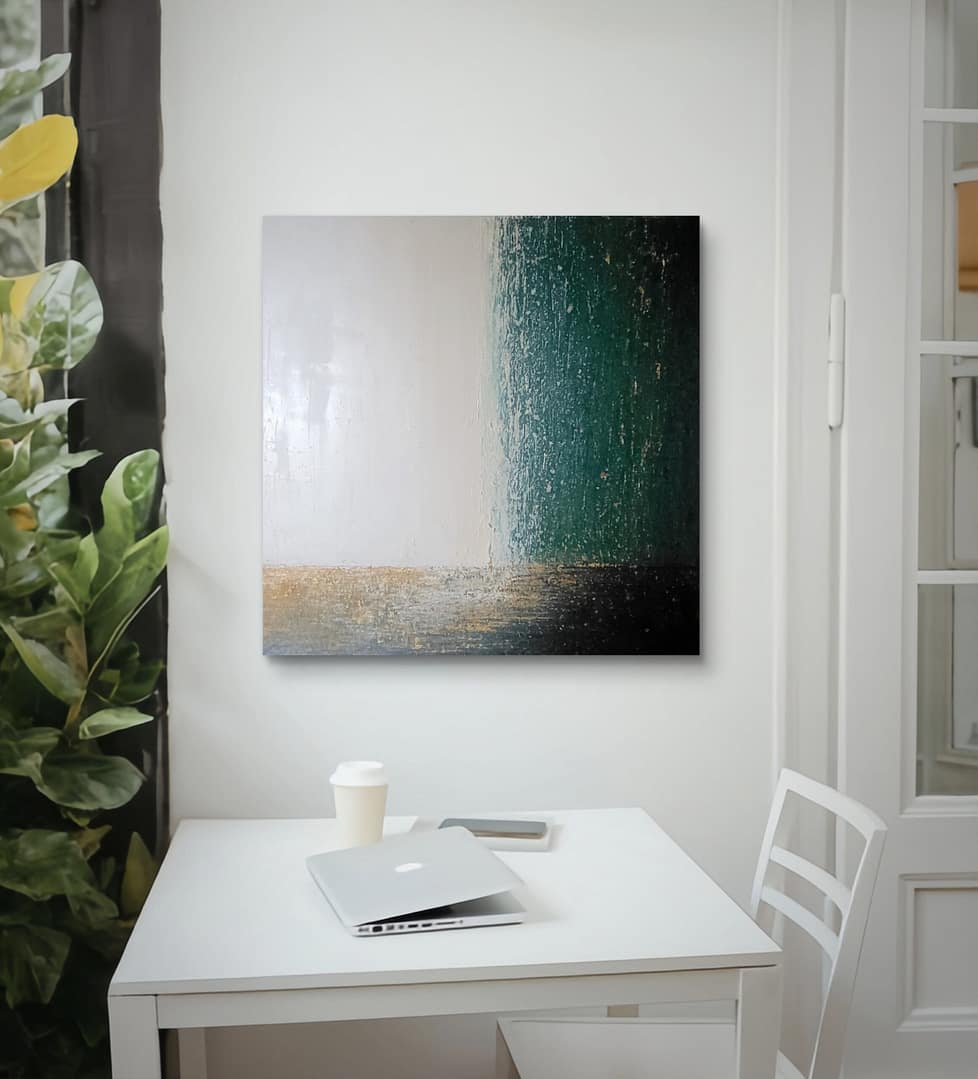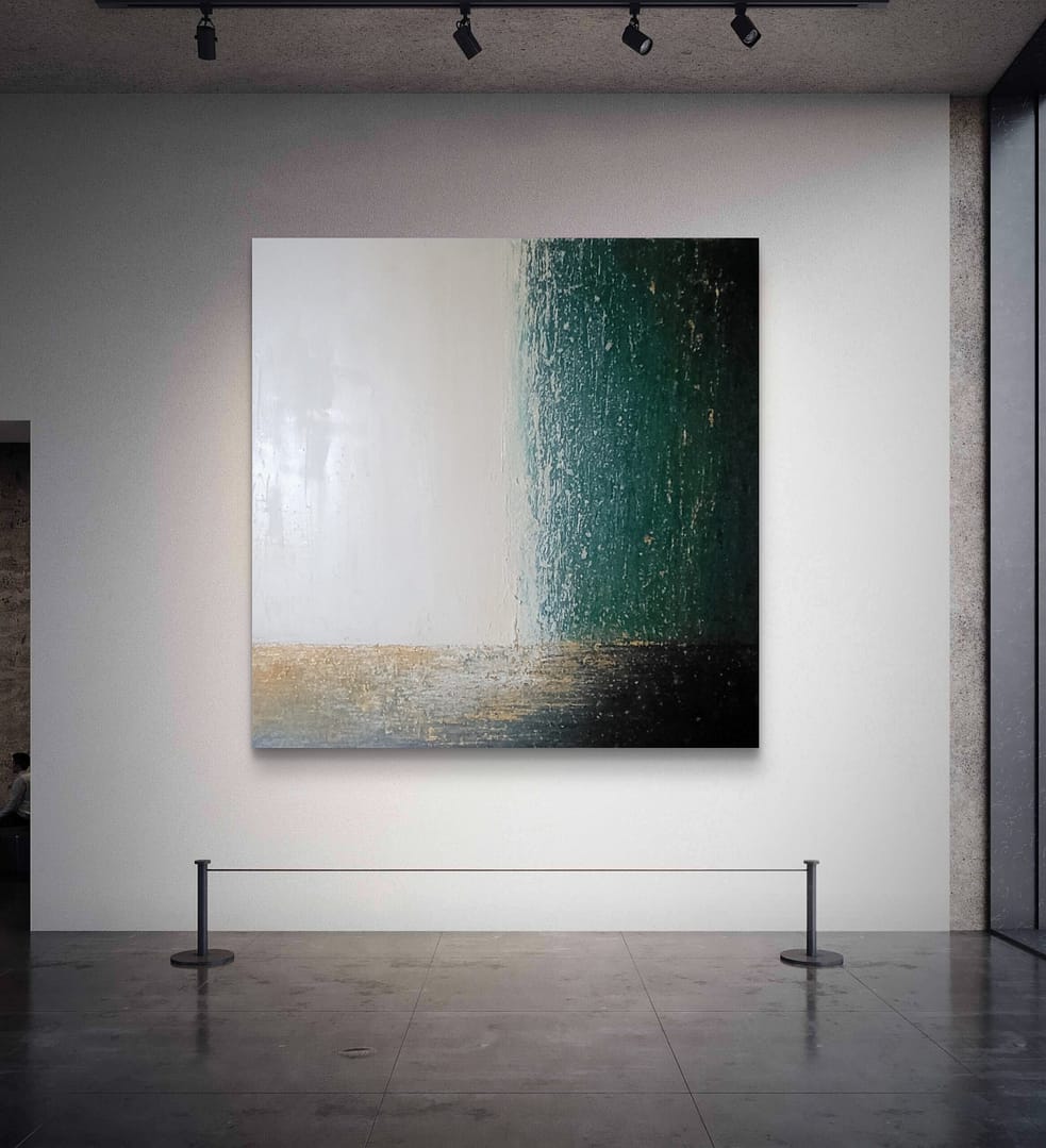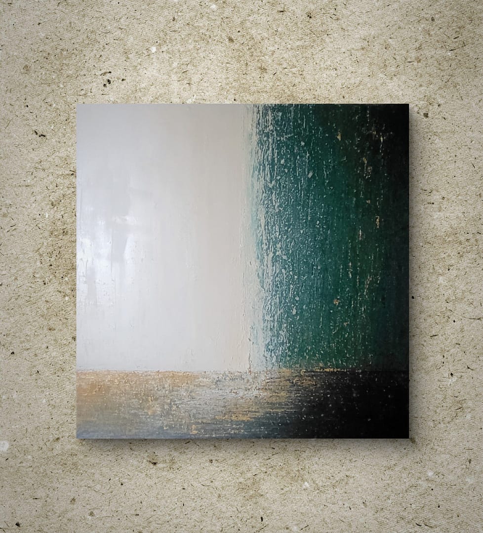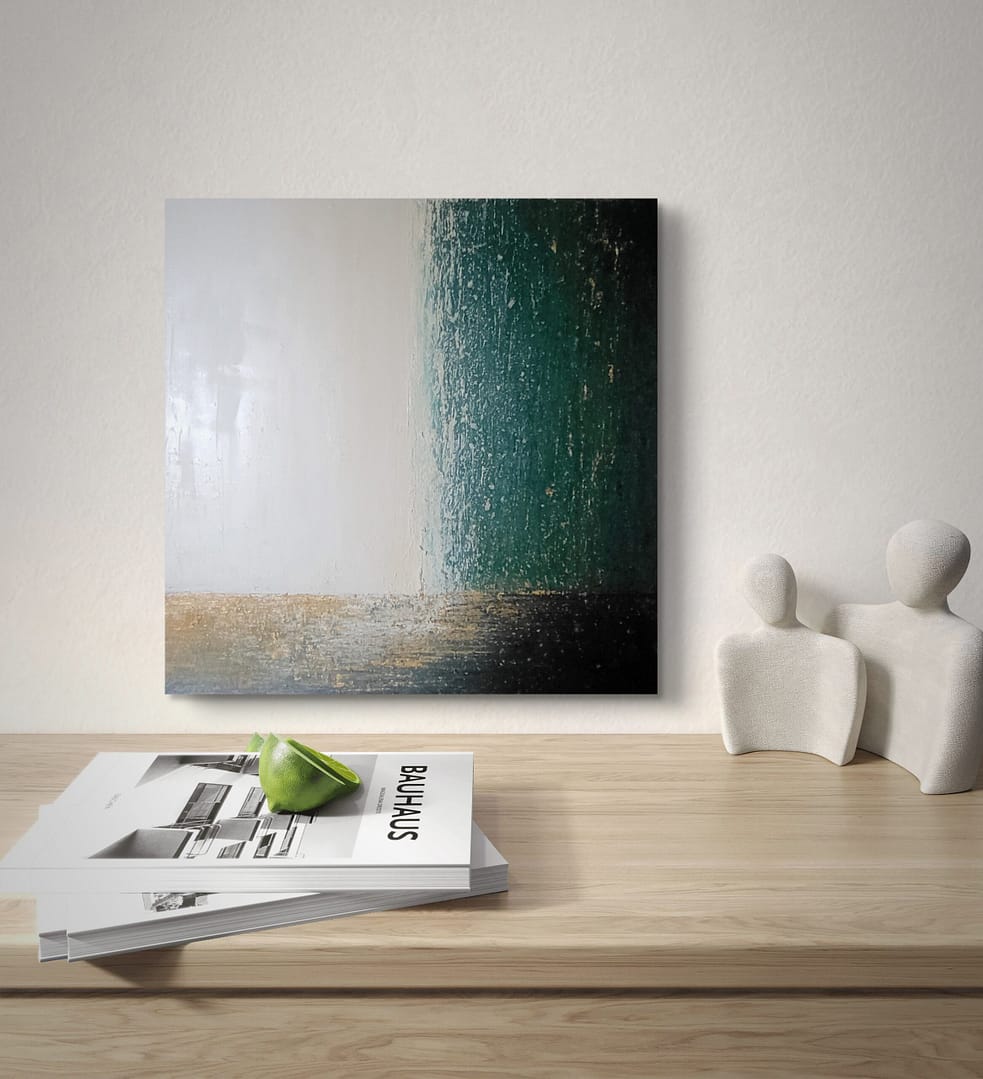 Obraz olejny w stylu abstrakcyjnym w wariacji szmaragdowej na specjalne zamówienie do Salonu Bernacki w Łodzi 🙂